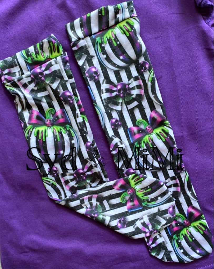 Syd & MiMi Boot Socks are made with the same cotton/spandex/poly blend fabrics that our other clothing items are made with. They are slightly stretchy length-wise, very little stretch width-wise.