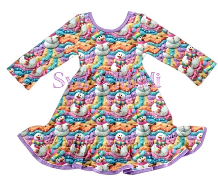 Ready to ship Jolly Snowmen Twirl Dresses are extras from our Holiday Pink Preorder. Sizes and quantities are limited for ready to ship options, when offered in a preorder, the size range for dresses is 3/6mo through 14/16yr.